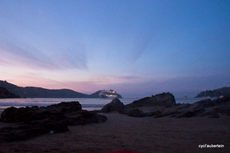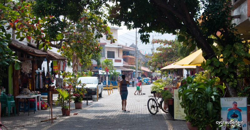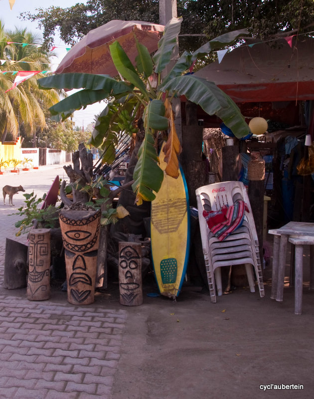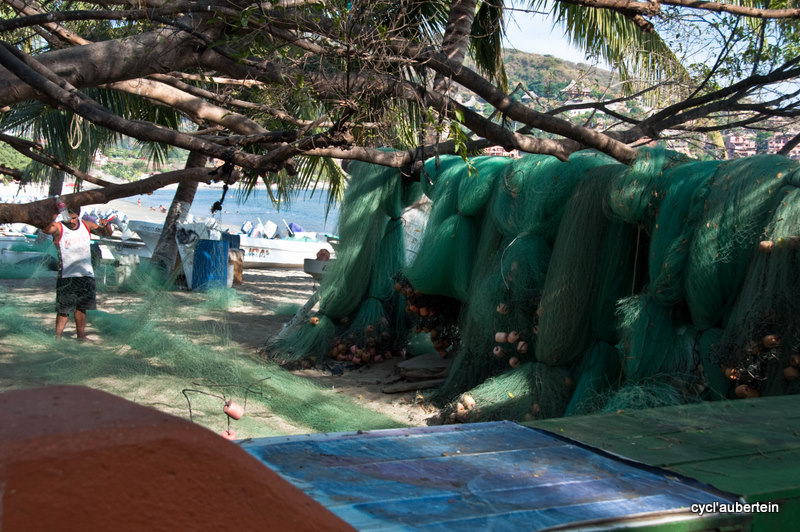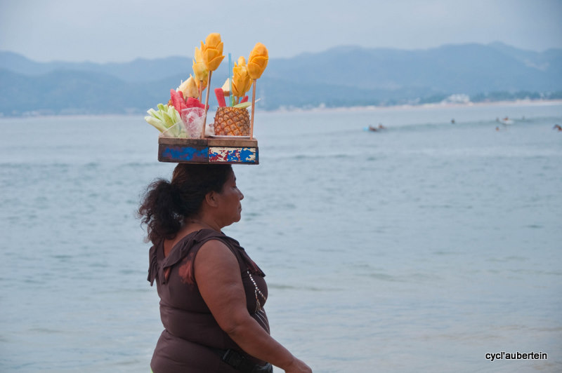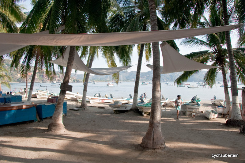 C’est notre dernière destination sur le Pacifique, du moins au Mexique. La ville est aussi très touristique. Arrivés dans la nuit, nous rejoignons une des plages pour finir notre nuit à la belle étoile. Au matin, un énorme bateau de croisière barre l’horizon, des centaines d’américains vont débarquer pour la journée. Avec nos gros sacs, nous ne passons pas inaperçus, nous devons faire partie du folklore car on devient la cible des appareils photos. Vivement qu’on trouve un endroit pour poser tout ça. Dès qu’on s’éloigne du rivage, on quitte les touristes et les magasins de souvenirs pour plonger au coeur de la vie mexicaine. Nous trouvons vite une auberge de jeunesse chez Angela’s Hostel, vraiment bien. On est situé juste au dessus du marché, ambiance garantie dès l’aurore. Notre hôte parle anglais, ce qui facilite bien des choses.