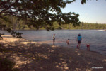 Au sujet des routes ici, l’air de rien et pas trop repérable sur la carte que nous avions (1:950 000), même en suivant le bord de l’eau ça monte et ça descend constamment (c’est sûr ça dépend d’où on regarde !) Et on commence à être bien entrainé, le passage des vitesses est encore à coacher pour Thomas. Thomas qui est fier de ses 46,9 km/h en descente ! Quant aux automobilistes, ils sont pour l’instant globalement respectueux vis à vis des cyclistes. Ici, circulent essentiellement de gros 4×4, pickups, de gros camions, de gros bus et de nombreux twins poussifs (à faire traduire par des amateurs du Joe Bar Team).