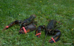 Justement au sujet de la faune : à part 2 lapins vus sur le bord de la route, des bruits d’oiseaux non connus, quelques poules et chèvres aperçus dans une ferme où nous avons dormi, nous avons eu à faire aux moustiques, les blacks flyers. Et là, aucune comparaison possible avec chez nous. De quoi nous mettre un bon coup au moral, tellement on se fait bouffer, insupportable. Tant qu’on est en mouvement ça va, mais on ne peut pas pédaler jour et nuit ! Heureusement que nous avons rencontré Gilles, cyclovoyageur solitaire, avec qui nous avons roulé un tout petit bout de chemin. Il nous a donné son produit miracle pour tenir jusqu’au prochain supermarché ; évidement, y’a que les produits des locaux qui marchent, Cécile nous avait prévenus…