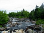 Quelques mots sur les villages rencontrés dans ces contrées. Nous pensions pouvoir nous arrêter souvent dans les villages, sur la place à l’abri des platanes, faire le plein d’eau à la fontaine, la lessive au lavoir, boire le café en terrasse, prendre la baguette à la boulangerie… En fait, ce comportement typiquement européen ne semble pas possible, il faut s’y habituer. Ici, entre 2 panneaux espacés d’1 ou plusieurs kms, il y a parfois un convenience store (une épicerie), parfois une station service ou un centre médical ou un salon de massages… Souvent une église en bois et son cimetière et toujours quelques maisons en bardage pelouse tondue impec et petit drapeau canadien. Entre deux village, c’est une forêt primitive impénétrable, entrecoupée de terrains privés parfaitement bien tondus. Autant dire que si on veut planter la tente dans un coin ni vu ni connu, ce n’est pas possible.