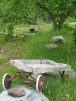 Vous nous demandez par mail si nous avons crevé ? Et bien non pas encore! Mais contre toute attente, l’attache de la carriole de Maëlle a cassé. Système D jusqu’à Québec où nous aurons la pièce de rechange.