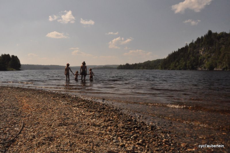 Justement au sujet de la faune : à part 2 lapins vus sur le bord de la route, des bruits d’oiseaux non connus, quelques poules et chèvres aperçus dans une ferme où nous avons dormi, nous avons eu à faire aux moustiques, les blacks flyers. Et là, aucune comparaison possible avec chez nous. De quoi nous mettre un bon coup au moral, tellement on se fait bouffer, insupportable. Tant qu’on est en mouvement ça va, mais on ne peut pas pédaler jour et nuit ! Heureusement que nous avons rencontré Gilles, cyclovoyageur solitaire, avec qui nous avons roulé un tout petit bout de chemin. Il nous a donné son produit miracle pour tenir jusqu’au prochain supermarché ; évidement, y’a que les produits des locaux qui marchent, Cécile nous avait prévenus…