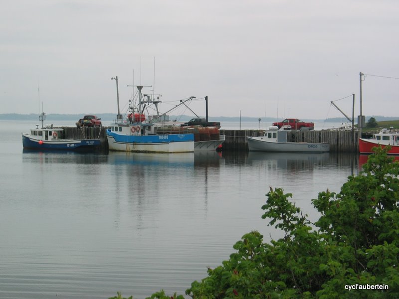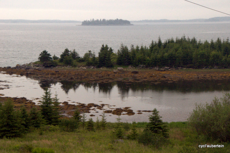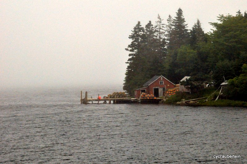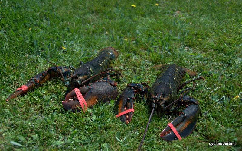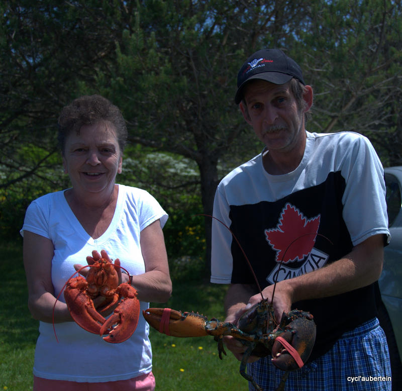 Petite anecdote encore sur l’accueil des gens : un midi, alors que nous n’avions toujours pas de ravitaillement en vue, Jean-Roch est allé demander où était le prochain «convenience store». On s’est retrouvé chacun avec un hot-dog et un coca en mains, chips et dessert à discuter avec un tas de gens qui avait étalé leur braderie devant la maison. Jerry et Gin, Art, Charleen… thanks for all and nice to meet you ! Et… nous sommes repartis avec un homard pour notre dîner. Message pour Gin : nous avons laissé le seau à glace au camping de Spry Bay.