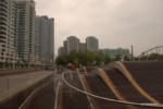 Fin pour nous du Waterfront Trail à Toronto, sous la pluie. Nous prenons le train à 22 heures et nous avons pas mal de manutention à faire avant d’embarquer…