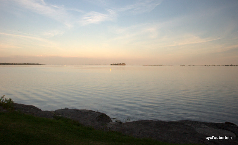 Le Québec terminé, la Véloroute se finit aussi. Ici en Ontario commence le Waterfront Trail. Ce tracé nous fera remonter encore plus haut sur le Saint Laurent jusqu’au lac Ontario, puis nous longerons le lac jusqu’aux chutes du Niagara. De nombreuses personnes rencontrées nous ont recommandé cet itinéraire fabuleux et Claude et Gilles nous ont prêté le topo, nous sommes parés pour l’aventure.