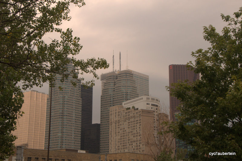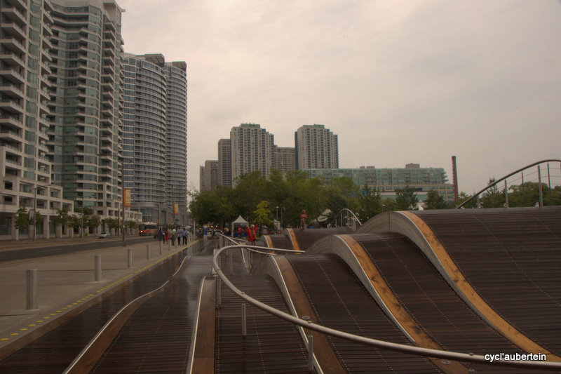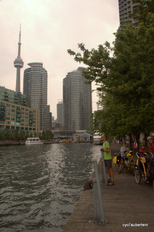 Fin pour nous du Waterfront Trail à Toronto, sous la pluie. Nous prenons le train à 22 heures et nous avons pas mal de manutention à faire avant d’embarquer…